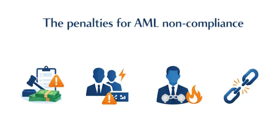 Breaches of Oman AML laws can lead to administrative fines, imprisonment, and cancellation of business licenses.